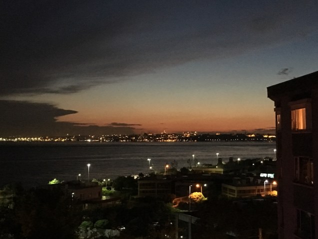Emine neemt me mee naar de woonkamer en laat me het uitzicht zien, en voor me openbaart zich het meest dromerige uitzicht dat ik ooit heb gezien, beter dan ik durfde te hopen toen ik hier naar toe kwam, helemaal op maat voor mij. Tussen de flatgebouwen, over het straateinde heen, heb ik vierkant uitzicht op de Bosporus en aan de overkant Fatih, als een sieraad langs de hals van de horizon, met als edelstenen de Aya Sofia en de Blauwe Moskee.