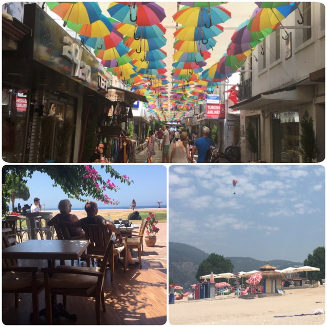 Ik rij naar beneden door de Atatürk Caddesi, de hoofdstraat van Ölüdeniz want elke hoofdstraat in Turkije heet Atatürk Caddesi, bij de rotonde linksaf en met met een helling van iets tussen de 7-10 graden slalommend naar beneden. Naar een paar bochten zie je vanaf deze hoogte de azuurblauwe zee beneden verschijnen en komt er een grote glimlach op je gezicht en als het goed is hangen er wel een paar paragliders in de lucht. Ik neem een bedje en inderdaad is het bijna niet uit te houden. Beetje lezen, beetje zwemmen, lezen, zwemmen en na een paar uur hou ik het echt niet meer uit. Feyza heeft me verteld dat het strand in Çalış veel fijner is, vanaf de ochtend staat er wind en er zijn restaurantjes cafeetjes aan het strand. Ik besluit dat ik me thuis even ga opfrissen en daar dan misschien nog even ga zwemmen en iets ga eten. Het opfrissen gebeurt in het zwembad want er komt geen water meer uit de kranen in huis. Ik app Yulya (contactpersoon voor de eigenaar) met het probleem en ze zegt dat ze het uit zal zoeken.