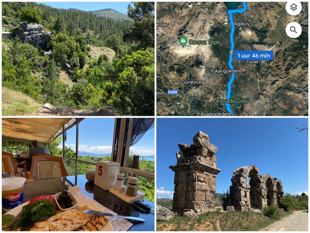 Dan de weg op, weg uit deze drukke badplaats, ik was in Antalya en ik heb de zee niet eens gezien, haha. Ik besluit data en batterijen te sparen en geen navigatie aan te zetten maar me gewoon ouderwets door de borden te laten leiden en te hopen dat het goedkomt. Ik moet voorlopig richting Isparta en dat staat al aangegeven en dan zal ik over een kilometer of 80 wel even stoppen om te kijken waar ik eraf moet. Ik maak voor de zekerheid wat screenshots van de route en de plaatsjes waar ik langs moeten komen. De weg is voorlopig 2-1 / 1-2 zoals de N50 zodat je per richting om de beurt kan inhalen. Dus dat is wel fijn alleen dat ontslaat je dus niet van de verplichting om als je op het 2-1 deel rijdt en er iemand achter je zit te drukken (wat ik kan begrijpen want ik rijd maar 80-90), gewoon op de vluchtstrook te gaan rijden om diegene voor te laten gaan. Evenmin hoef je aan te nemen dat je veilig kan inhalen op het 1-2 gedeelte want de inhaalstrook die je dan tot je beschikking hebt, wordt ook gewoon gebruikt door het tegemoetkomende verkeer. Maar dat moet je even weten en je gewoon aanpassen zodat iedereen weet waar hij aan toe is en dan werkt het prima. Zouden hier ook kamervragen worden gesteld over de weginrichting? Denk het niet.